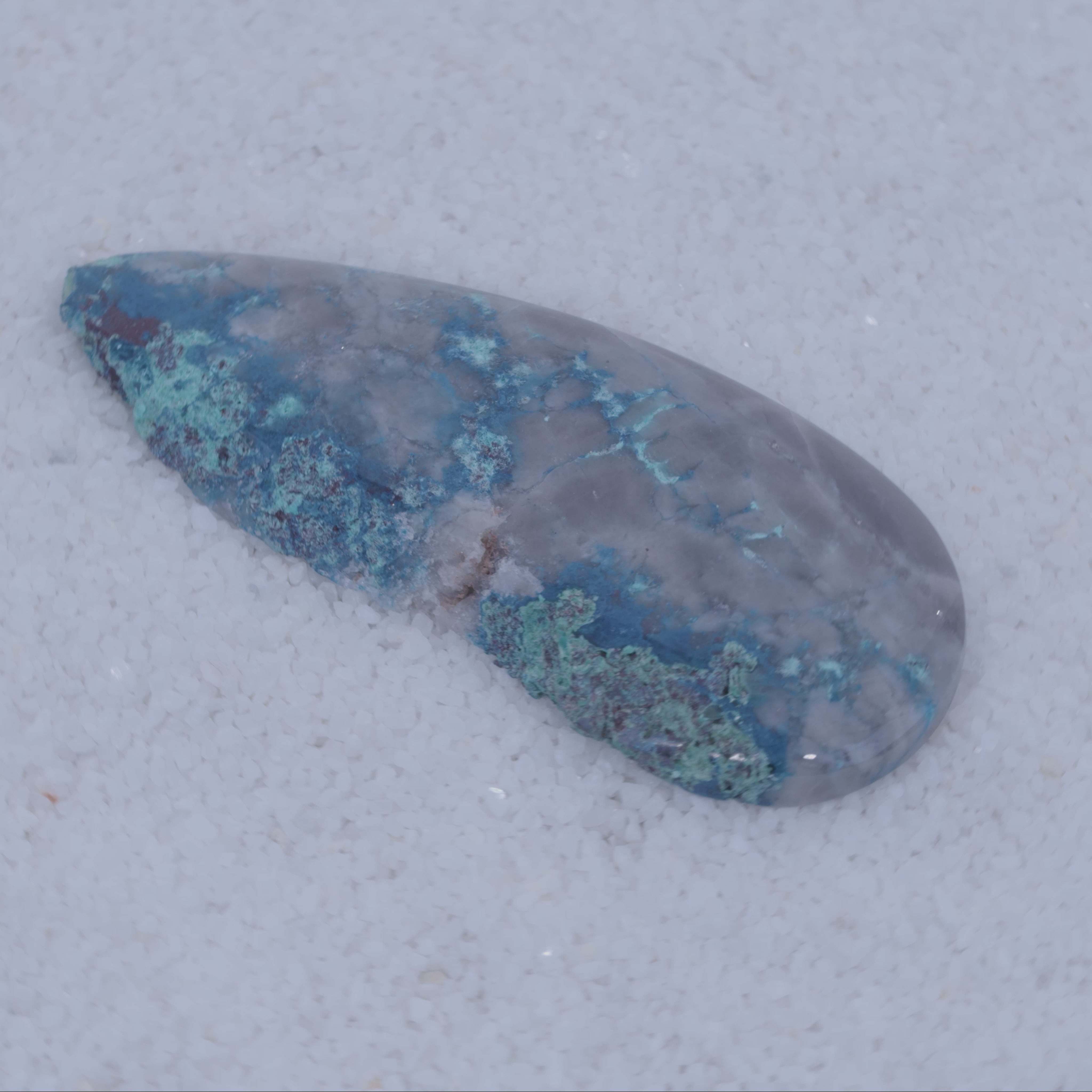 Each Canyonite specimen is naturally unique. Formed within a complex quartz–chalcedony–silica vein system, copper-silicate mineral presence varies from piece to piece due to oxidation and supergene mineralization. Not every cabochon or sample will display all rare minerals. This natural diversity makes Canyonite scientifically rare and visually one-of-a-kind. All specimens are authenticated by mineralogical analysis, though inclusions and visible color may vary across deposits.