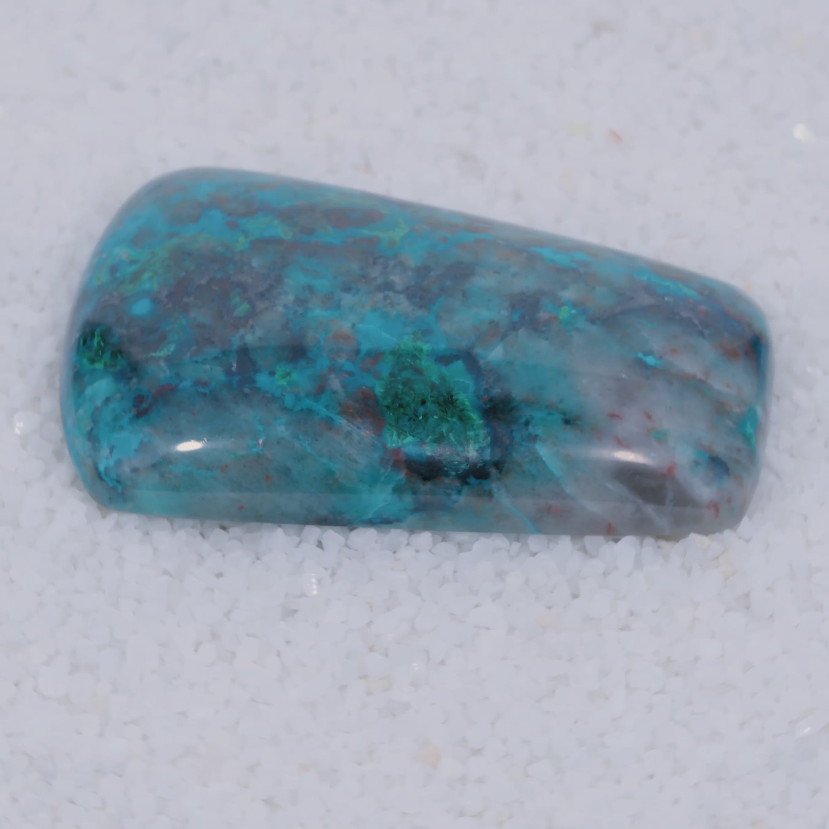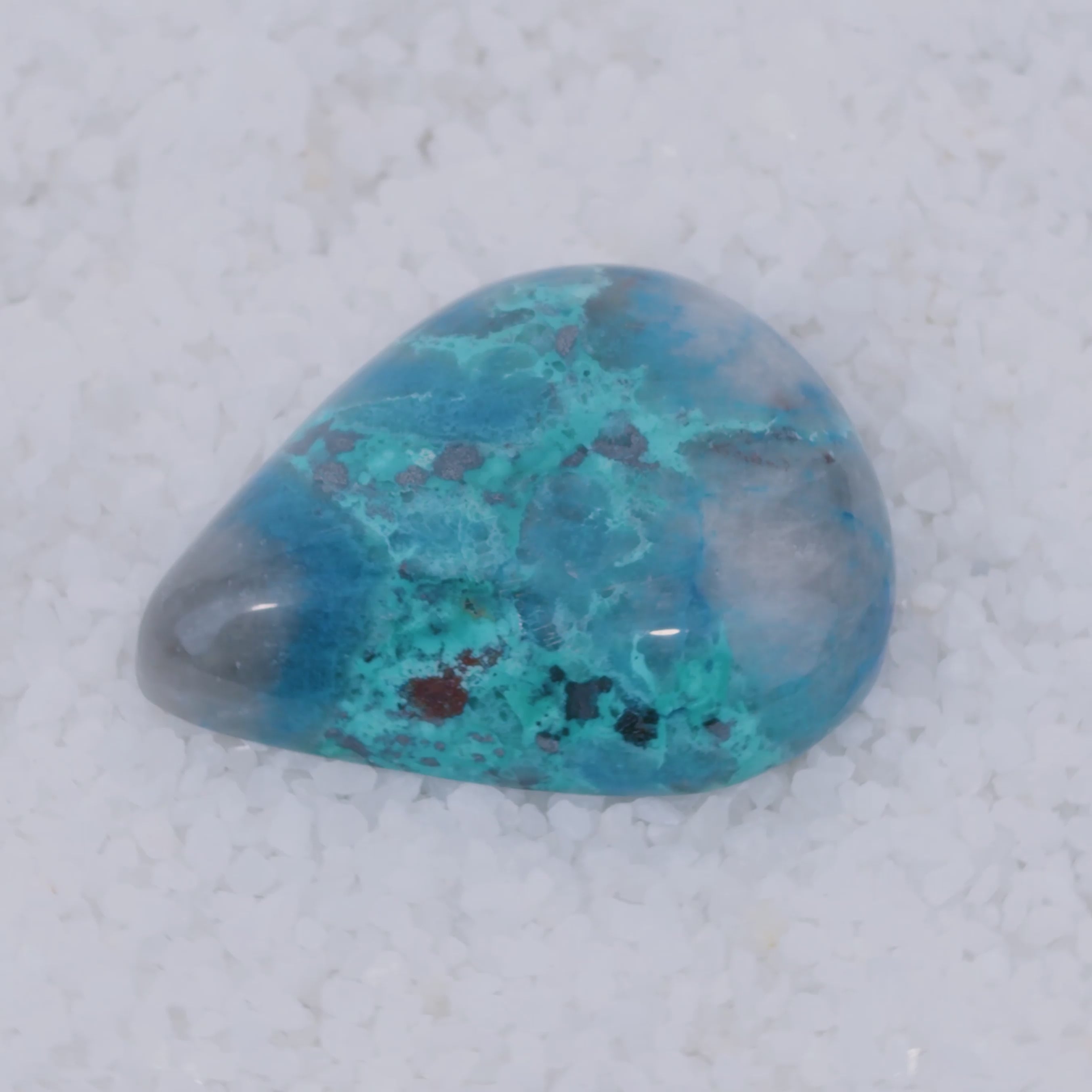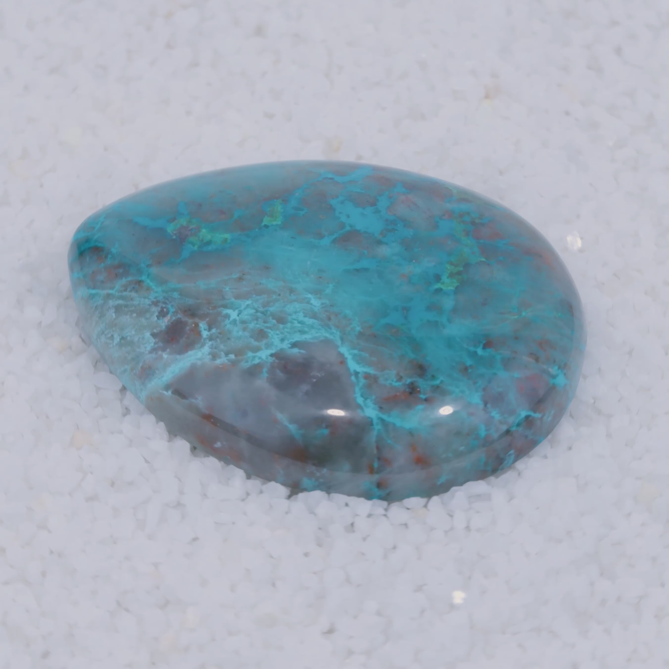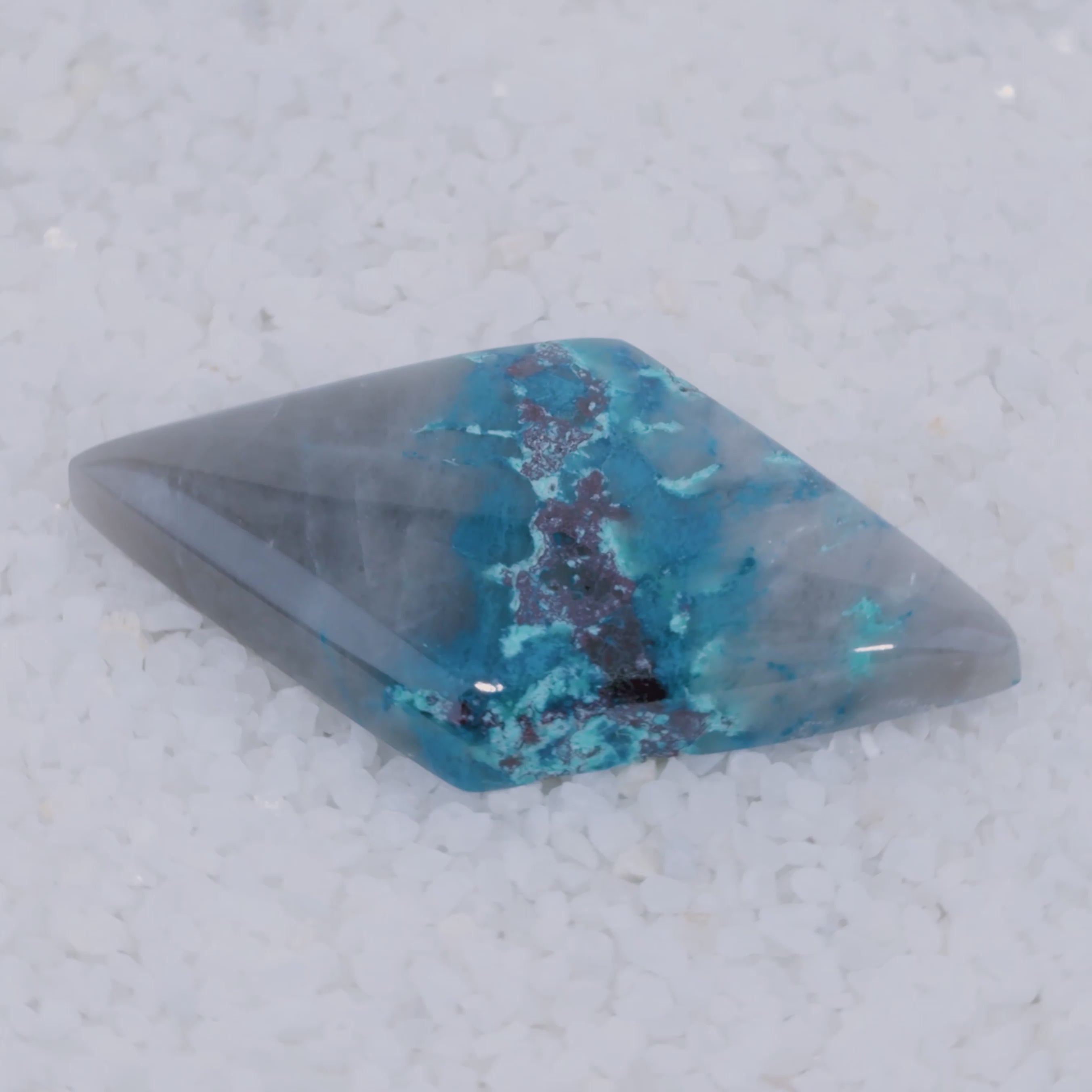 Each Canyonite specimen is naturally unique. Formed within a complex quartz–chalcedony–silica vein system, copper-silicate mineral presence varies from piece to piece due to oxidation and supergene mineralization. Not every cabochon or sample will display all rare minerals. This natural diversity makes Canyonite scientifically rare and visually one-of-a-kind. All specimens are authenticated by mineralogical analysis, though inclusions and visible color may vary across deposits.