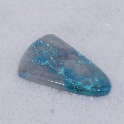 Sourced from a small singular deposit in Southern Arizona, Canyonite Sky is a copper mineral gemstone of unmatched rarity. This cabochon reveals sky-blue Papagoite, teal Ajoite, indigo Shattuckite—three of the world's rarest copper minerals—embedded with crimson Cuprite in a translucent druzy chalcedony matrix.
