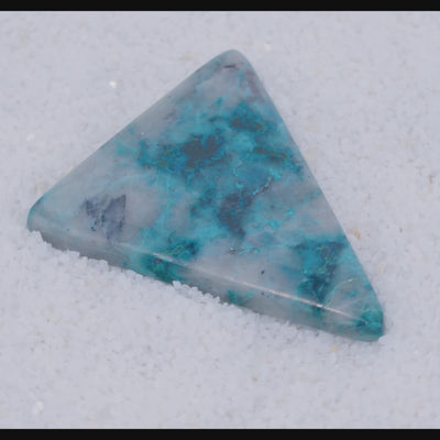 A once-in-a-lifetime rarity from Southern Arizona, this cabochon showcases vivid emerald-green Brochantite crystals, sky-blue Chrysocolla and crimson Cuprite suspended in translucent chalcedony. While Brochantite is sometimes found on quartz or other matrix, it is exceptionally rare included in matrix, especially chalcedony, making this gemstone a one of a kind discovery.