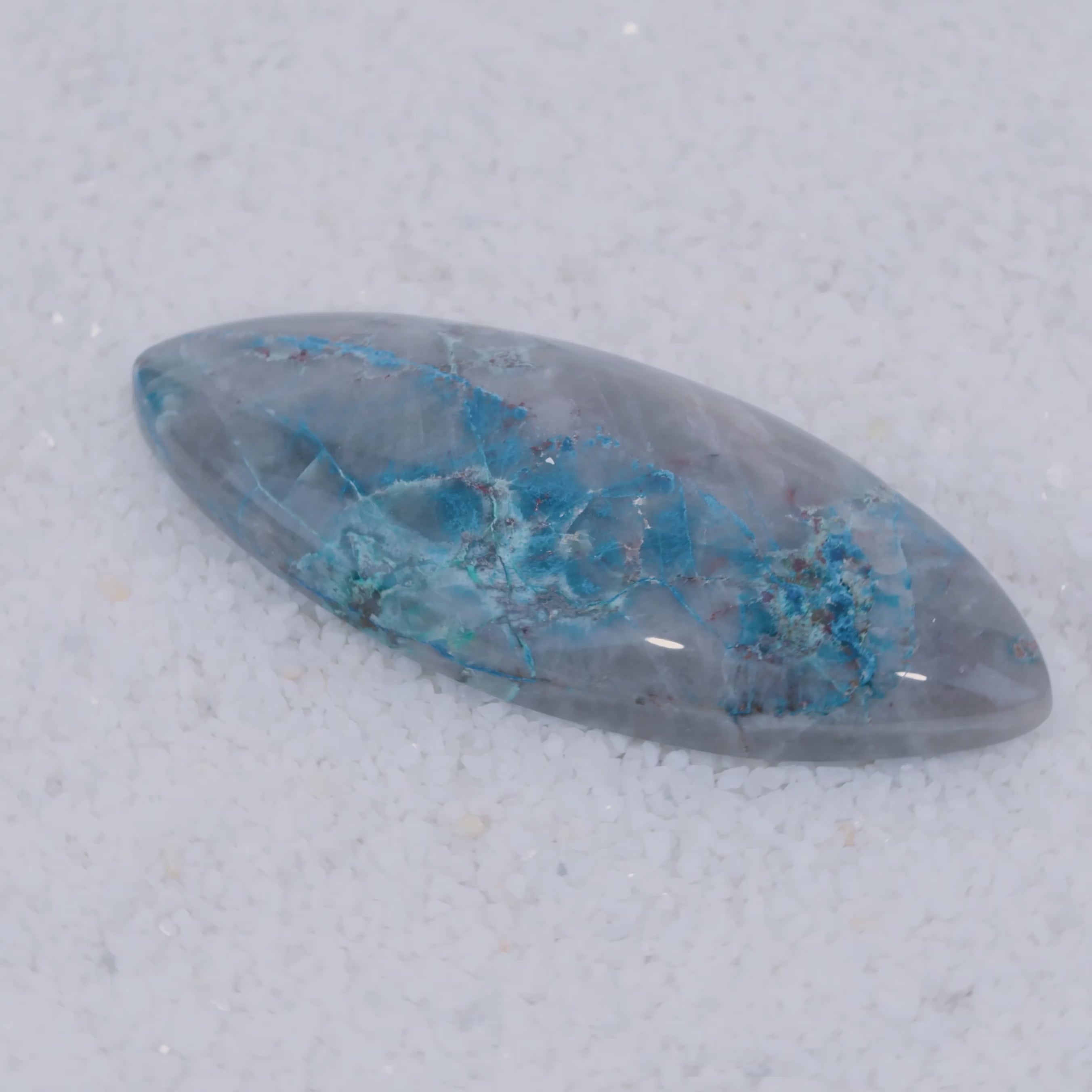 Sourced from a small singular deposit in Southern Arizona, Canyonite Sky is a copper mineral gemstone of unmatched rarity. This cabochon reveals sky-blue Papagoite, teal Ajoite, indigo Shattuckite—three of the world's rarest copper minerals—embedded with crimson Cuprite in a translucent druzy chalcedony matrix.