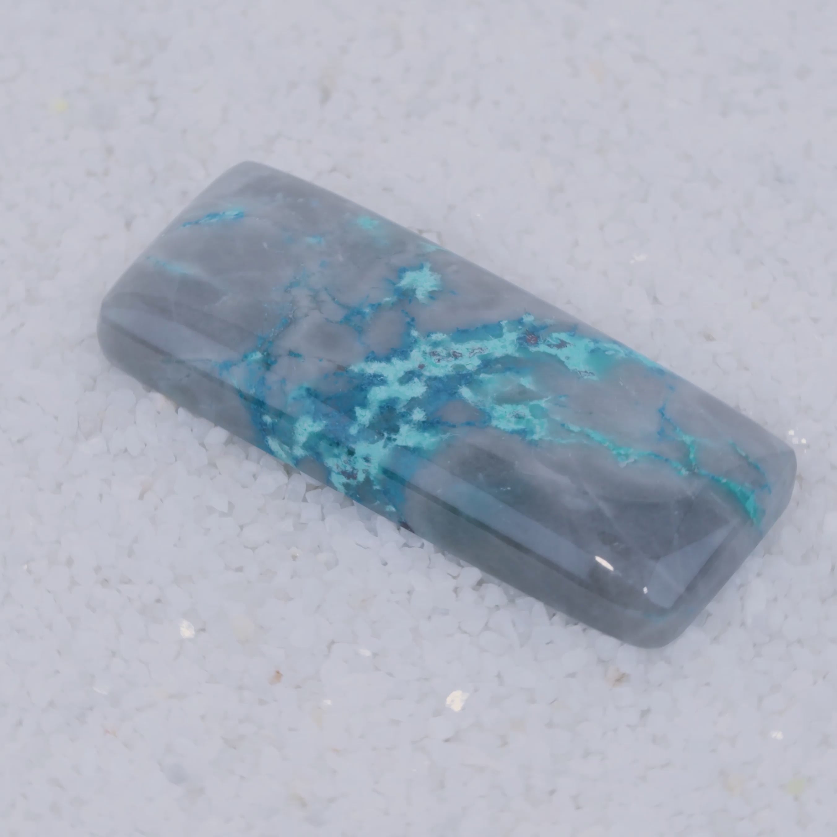 Sourced from a small singular deposit in Southern Arizona, Canyonite Sky is a copper mineral gemstone of unmatched rarity. This cabochon reveals sky-blue Papagoite, teal Ajoite, indigo Shattuckite—three of the world's rarest copper minerals in a translucent druzy chalcedony matrix.