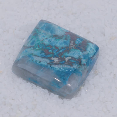 Canyonite Sky 37ct square cabochon with vivid Papagoite and Ajoite inclusions — a rare Arizona collector gemstone for artisan jewelers.