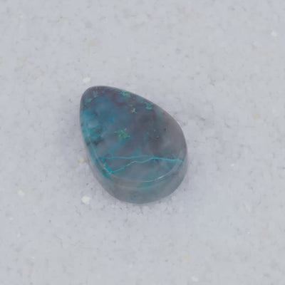 A rarity from Southern Arizona, this gemstone showcases vibrant emerald-green crystal Brochantite, sky-blue Chrysocolla, and crimson Cuprite, suspended in translucent chalcedony. Brochantite commonly forms as surface crystals. It is a rare occurrence to find Brochantite crystals inside a chalcedony matrix, making this gemstone a one of a kind rarity.