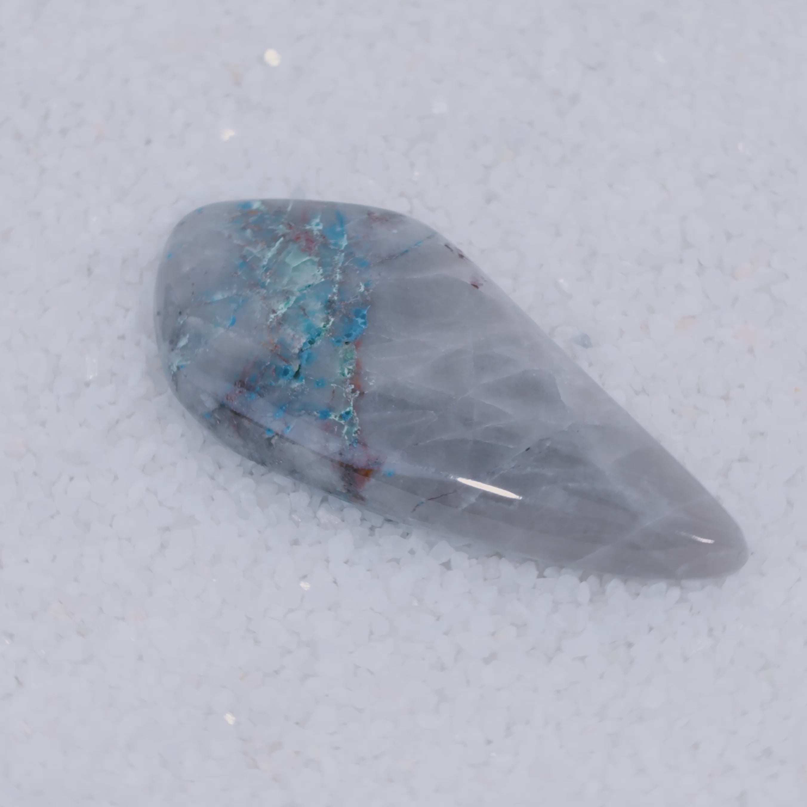 Canyonite Sky 36ct teardrop cabochon with vivid Papagoite and Ajoite inclusions — a rare Arizona collector gemstone for artisan jewelers.