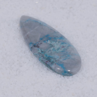 Canyonite Sky 31ct teardrop cabochon with vivid Papagoite and Ajoite inclusions — a rare Arizona collector gemstone for artisan jewelers.
