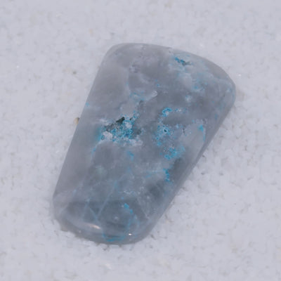 Sourced from a small singular deposit in Southern Arizona, Canyonite Sky is a copper mineral gemstone of unmatched rarity. This cabochon reveals sky-blue Papagoite, teal Ajoite, indigo Shattuckite—three of the world's rarest copper minerals in a translucent druzy chalcedony matrix.