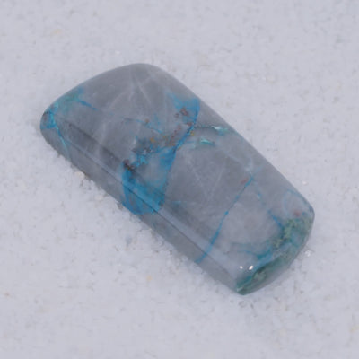 Sourced from a small singular deposit in Southern Arizona, Canyonite Sky is a copper mineral gemstone of unmatched rarity. This cabochon reveals sky-blue Papagoite, teal Ajoite, indigo Shattuckite—three of the world's rarest copper minerals—embedded with crimson Cuprite in a translucent druzy chalcedony matrix.