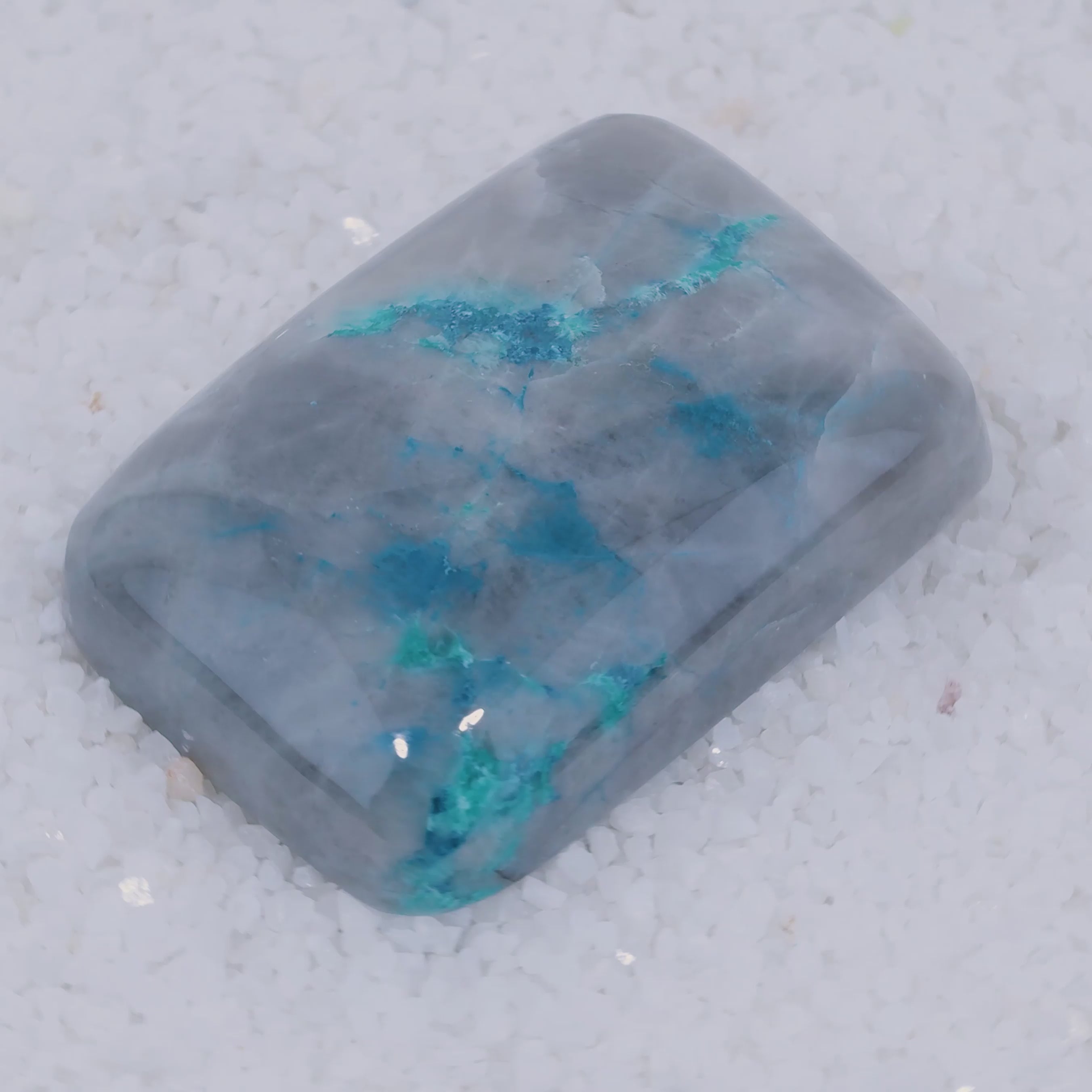 Sourced from a small singular deposit in Southern Arizona, Canyonite is a copper mineral gemstone of unmatched rarity. This gemstone reveals sky-blue Papagoite, teal Ajoite, indigo Shattuckite—three of the world's rarest copper minerals in a translucent druzy chalcedony matrix.