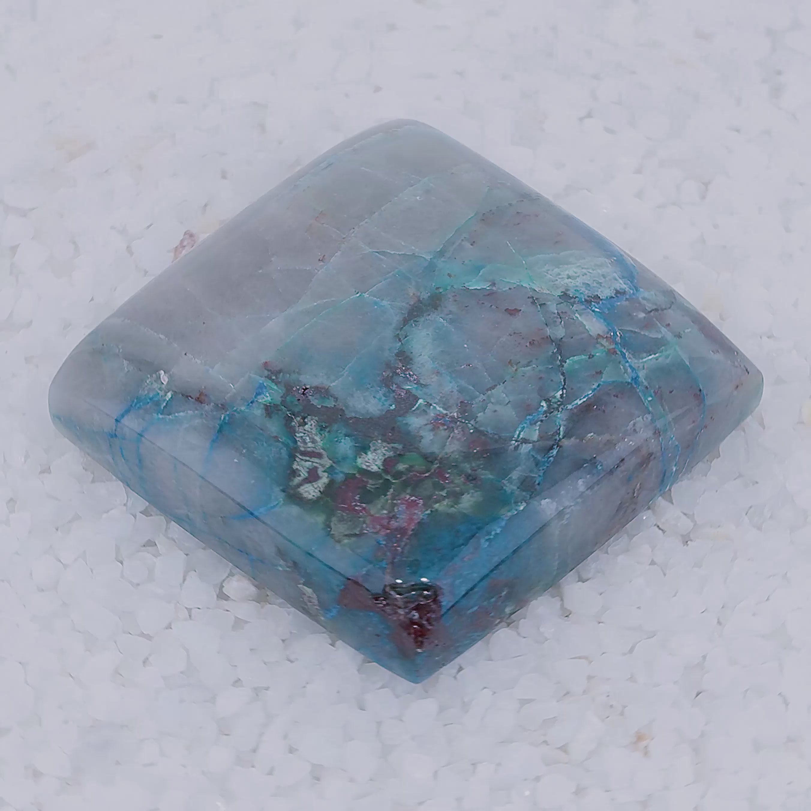 A once-in-a-lifetime rarity from Southern Arizona, these slabs showcase vivid emerald-green Brochantite crystals, sky-blue Chrysocolla and crimson Cuprite suspended in translucent chalcedony. While Brochantite is sometimes found on quartz or other matrix, it is exceptionally rare included in matrix, especially chalcedony, making these slabs a one of a kind discovery.