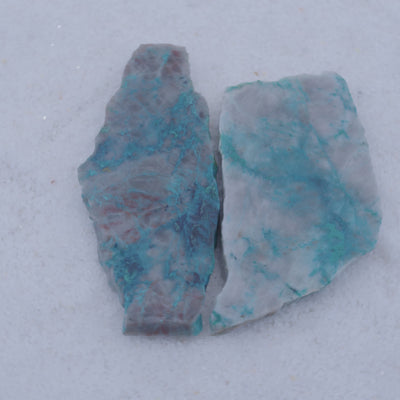 A once-in-a-lifetime rarity from Southern Arizona, these slabs showcase vivid emerald-green Brochantite crystals, sky-blue Chrysocolla and crimson Cuprite suspended in translucent chalcedony. While Brochantite is sometimes found on quartz or other matrix, it is exceptionally rare included in matrix, especially chalcedony, making these slabs a one of a kind discovery.